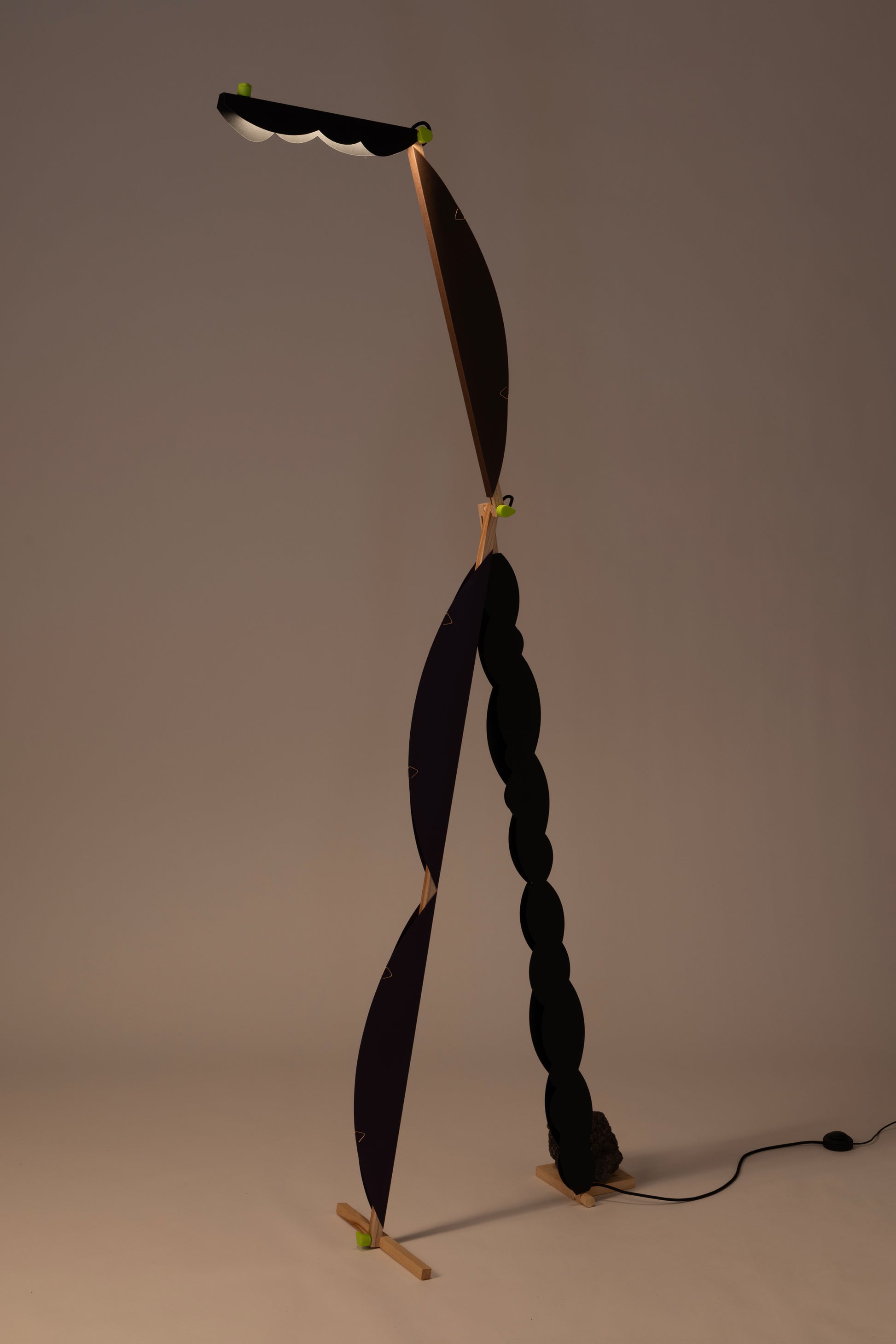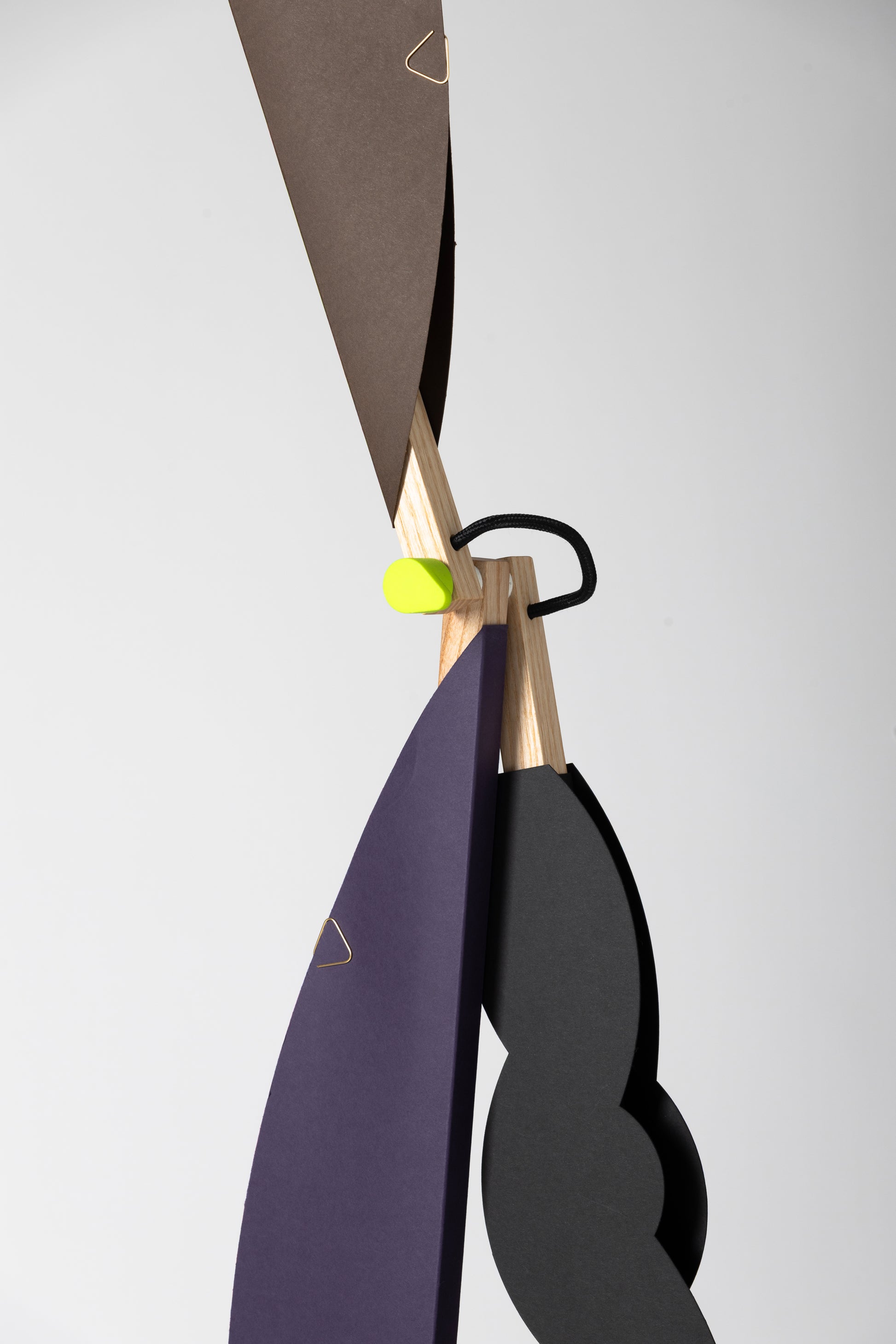 The A lamp embodies a perfect balance of simplicity and precision. Its structural frame is crafted from sustainably sourced ash hardwood, a material that develops a unique patina over time. For optimal balance, the lamp requires a counterweight of your choice, such as a stack of books, a stone, or a small potted plant.