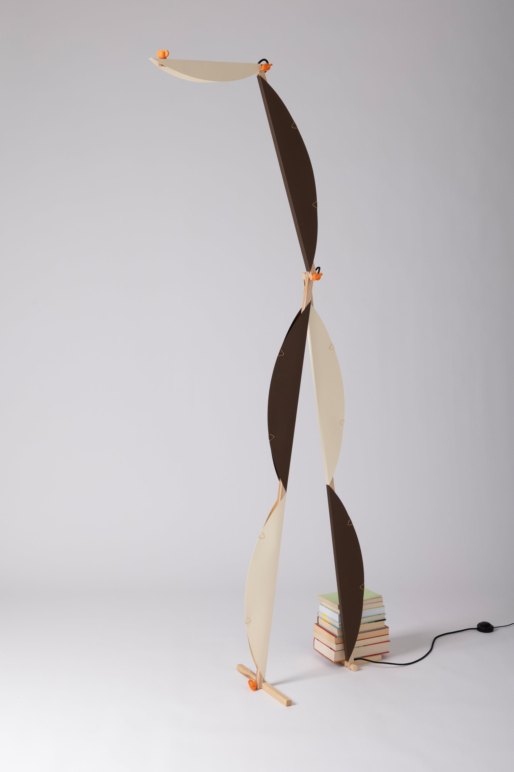 The A lamp embodies a perfect balance of simplicity and precision. Its structural frame is crafted from sustainably sourced ash hardwood, a material that develops a unique patina over time. For optimal balance, the lamp requires a counterweight of your choice, such as a stack of books, a stone, or a small potted plant.