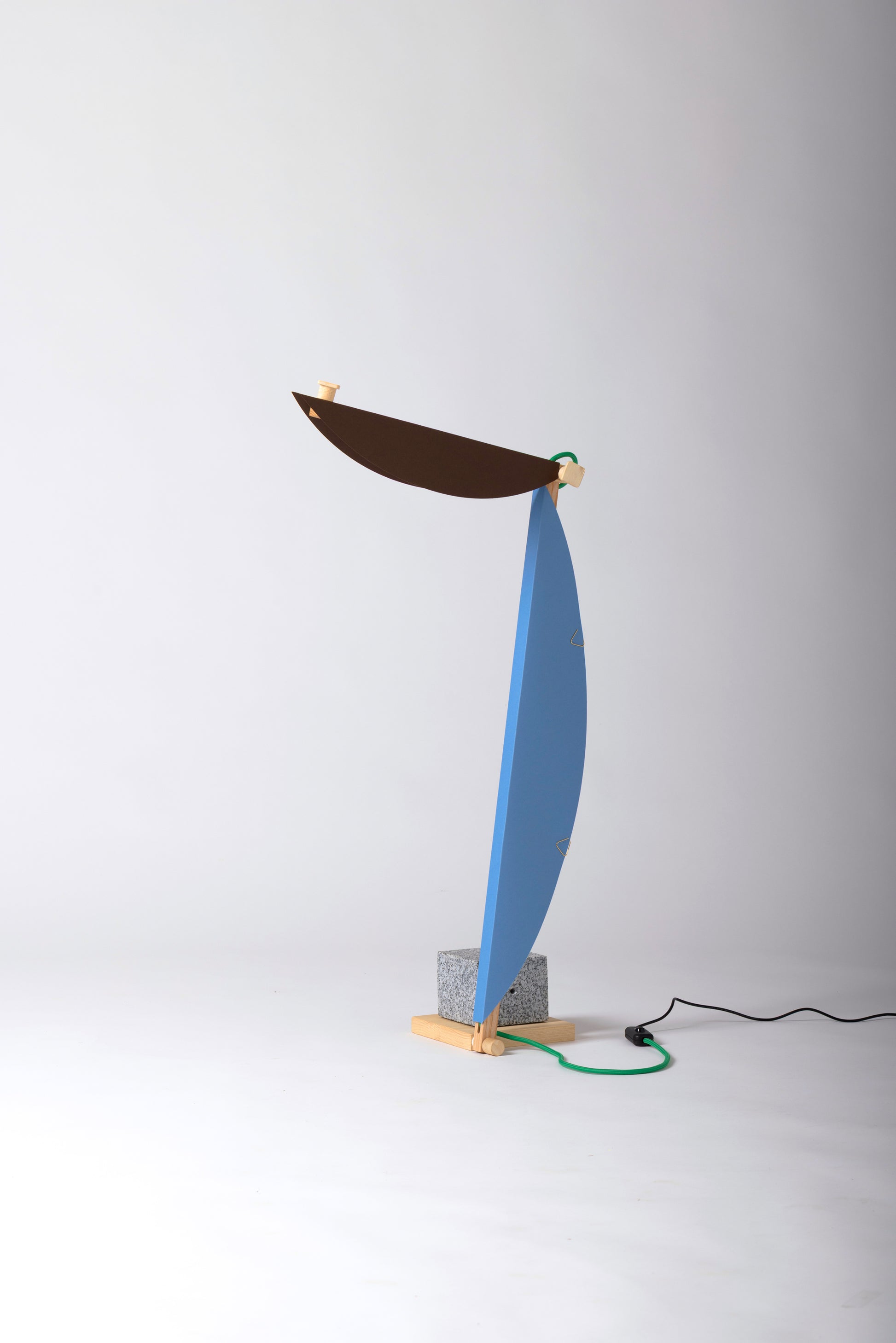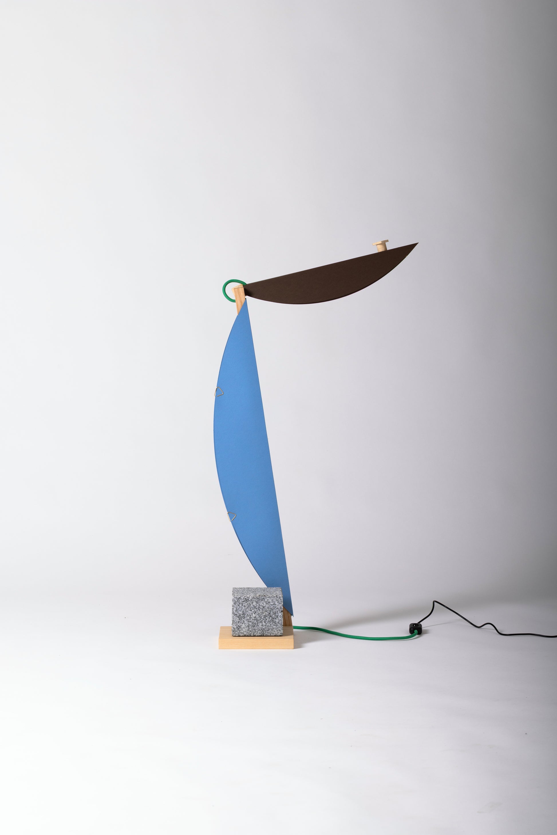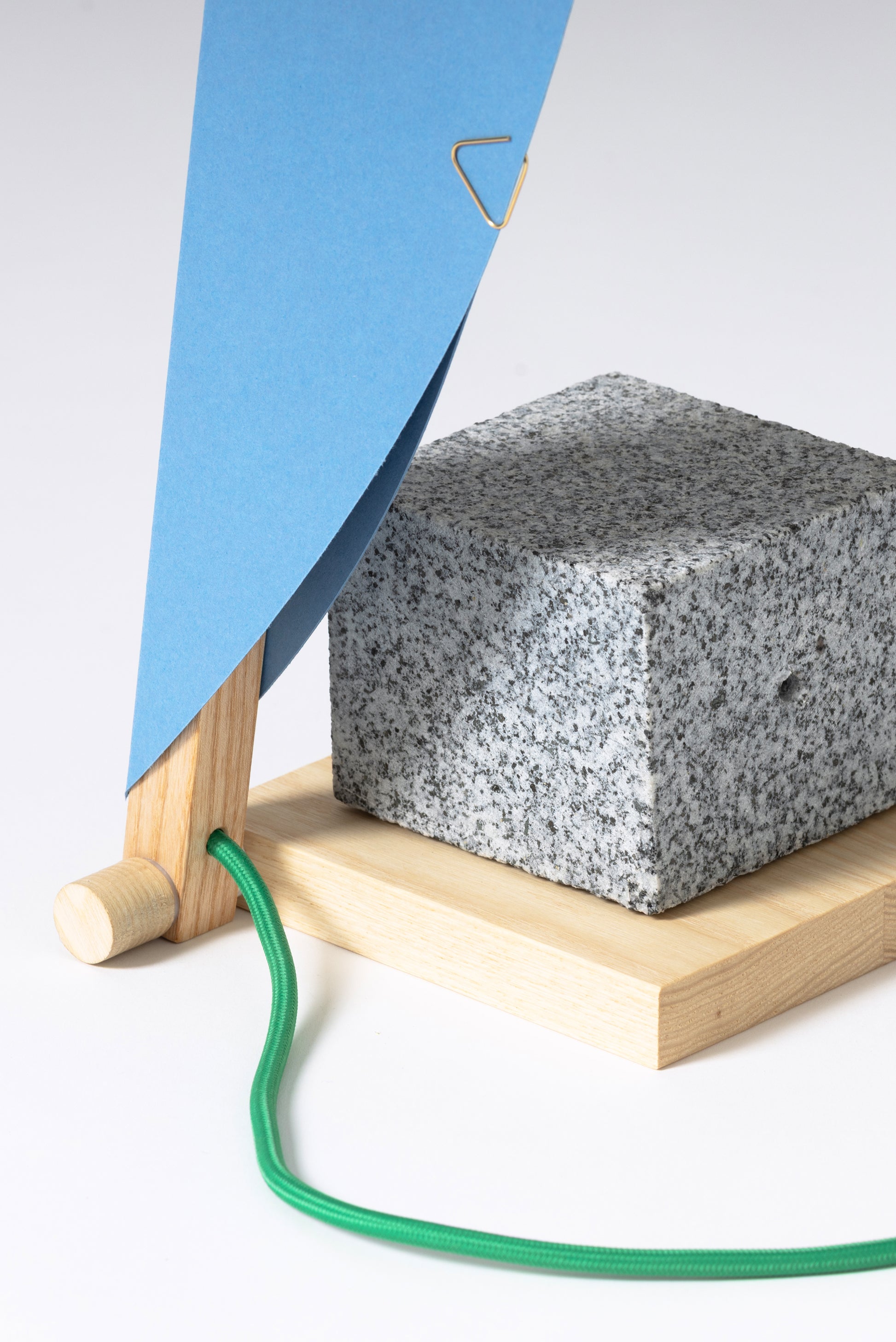 This model features the HALFMOON add-on and shade, crafted from GF Smith’s Colorplan paper and clipped with a classic ZENITH corner fastener. Note: The granite cube shown is not included. Includes two 3D-printed knobs, a wooden knob, and a green textile cable.